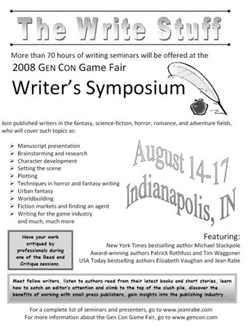Here's the promo flyer for the 2008 Gen Con Writer's Symposium. It's going to be so much fun.